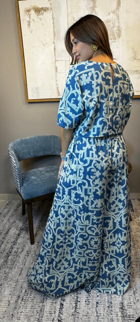 Teal Venesia Shirring Jumpsuit